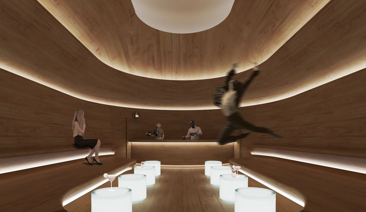 The abstraction of music adds a layer of complexity to the environment. Therefore, the space remains neutral and is complemented by a lighting design that creates a variety of immersive atmospheres, similar to how music embraces each harmony emitted through a hi-fi sound system.