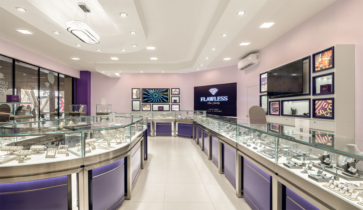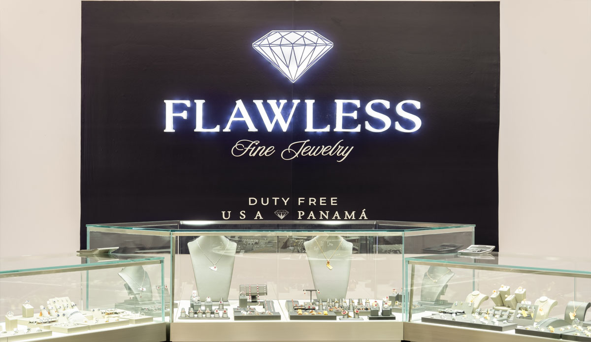A space where architecture and jewelry converge in a luxurious sensorial experience. Conceived as an intimate boutique in the Duty Free Mall at Colón 2000, Fawless combines warm materials and metallic reflections that evoke the brilliance of a diamond. Every detail, from the strategic lighting to the custom-made furniture design, was conceived to highlight the purity and character of the pieces on display. Circulation was carefully designed to generate a complete journey, guiding the visitor through a spatial narrative that invites them to linger, observe, purchase, and enjoy the surroundings. A jewelry store that is inhabited, designed so that each customer feels the power of silent luxury.